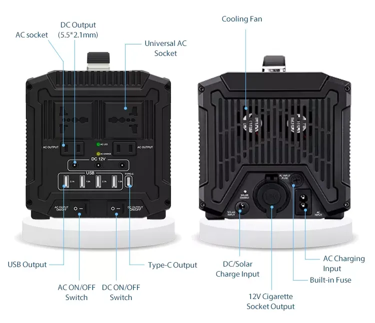 توفر بطارية LiFePO4 عالية الجودة أكثر من 3500 دورة شحن، مما يضمن أن يدوم G500L لسنوات. تتوافق تقنية البطارية هذه مع المعايير الدولية لمنتجات تخزين الطاقة الحديثة، مما يوفر حلاً طويل الأمد ومستدامًا. - مخارج متعددة للأجهزة المختلفة
