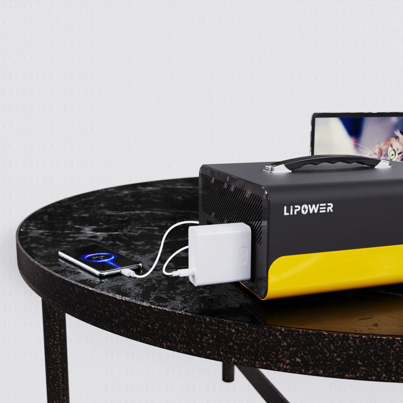 Capacidad ultra grande de 1004Wh que puede alimentar portátiles durante 15-20 horas, cargar smartphones 80-100 veces y hacer funcionar pequeños electrodomésticos continuamente durante 8-12 horas.