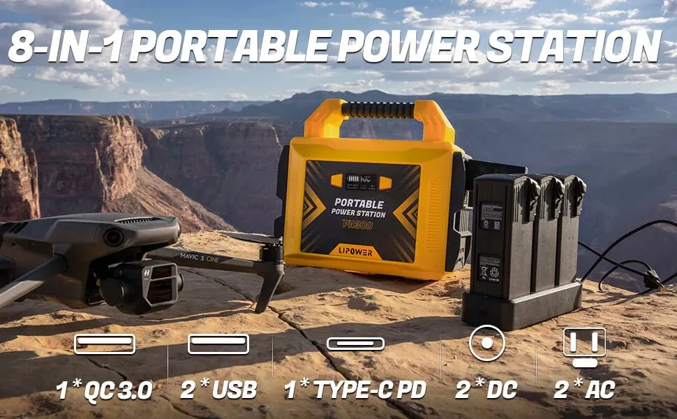 2× gniazda AC (czysty sinus, 110V), 2× DC 12V/6A, 2× USB-A, 1× QC3.0 szybkie ładowanie, 1× USB-C PD (do 18W). - 3 metody ładowania